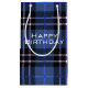 Motif bleu et noir tartan plaid pour Joyeux anniversaire. Le texte sur le sac est modifiable.