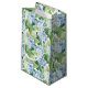 Ce petit sac cadeau en papier est présenté dans un joli imprimé floral bleu hydrangea. Customisez ce sac cadeau ou achetez tel quel. Impression sous licence