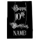 Ce sac cadeau d'anniversaire élégant et opulent présente le message "Joyeux 10e anniversaire", en texte de script formel, sur un arrière - plan de couleur noire. Il comporte également un nom de destinataire personnalisé. Un sac-cadeau orné à thème d’anniversaire comme celui-ci pourrait être une façon respectable d’envelopper un cadeau ou un cadeau pour célébrer le dixième anniversaire de quelqu’un. [~Z0000557]