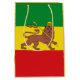 drapeau historique de l'Éthiopie ; bandes horizontales rouges, dorées et vertes avec Lion de Juda avec couronne et lance au centre; utilisé de 1897 à 1974