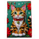Sac Cadeau Moyen Joli chat orange mignon et Noël au poinsettia