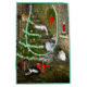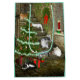 Les chats multiples de kity recueillent autour d'un escalier avec un arbre de Noël et d'autres décorations de Noël certains juste qui ne se reposent autour de d'autres la tentation de lutte mais personne dans le problème pourtant le sac de cadeau de Noël d'amoureux de les chats