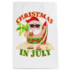 Célébrez Noël en juillet avec ce design cool mettant en vedette le Père Noël sur la plage avec sa planche de surf.