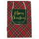 Sac Cadeau Moyen Red Tartan Plaid Gold Script Joyeux Noël