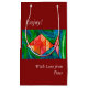 Le dessin montre un mignon poisson orange dans l'eau bleue verte, un tableau de média aquatique réalisé par Ulla Hennig. Le tableau est placé sur un arrière - plan rouge foncé, avec les mots "Profitez!" au-dessus du tableau et "avec amour de Pierre" au-dessous du tableau. Les mots peuvent être facilement échangés, ainsi que la couleur de l'arrière - plan.