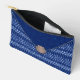 Avec une ambiance de bord de mer et d'été au Cap, le collage original de ZoeSPEAK sur ce petit Accessory Pouch est définitivement décontracté chic. Fait dans le style d'un sac d'embrayage, en bleu marine et blanc, le rabat du porte-monnaie est texturé bleu foncé avec un bord blanc. Le reste du sac est bleu avec des formes blanches à bleu clair comme des gouttelettes d'eau dans un motif en zigzag. Une coque de mer complète le tableau, agissant comme une fermeture sur le point du rabat. La coquille est une coquille de pétoncle dans les tons beige chaud et marron clair.