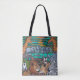 Scène de peinture stylisée colorée un Safari africain coloré par la populaire artiste Lisa Lorenz maintenant Disponible sur un élégant Sac fourre-tout All-Over-Print.