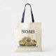 Le sac de l'arche de ce Noé a toutes sortes d'animaux flottant sur l'eau dans un grand bateau. Girafe, tigre, éléphants, chiens, singes, moutons avec une colombe minuscule au dessus.