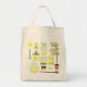Un sac d'épicerie comportant un motif orienté de lemoande avec des illustrations d'un broc de limonade, d'un pot de maçon de limonade, des cales de citron, d'un citronnier, d'une boîte métallique de sucre, d'un presse-fruits de main, d'un tamis, et d'une cuillère en bois. Personnalisez avec votre nom.