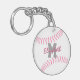Ce porte - clé acrylique sporty à thème de softball propose un graphisme simple et minimaliste de softball (montrant seulement les points de suture du softball en rose) sur un arrière - plan blanc personnalisable - personnaliser avec nom du joueur et monogramme - par katz_d_zynes