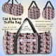 Sac De Sport Ajouter un nom Chat noir & Fleurs en rose