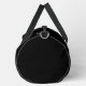 This black duffle bag features four vibrant vertical panels with watercolor-style coastal elements: a fish on an anchor, a sailboat on the water, a seashell with small fish, and a lighthouse with a dolphin, all under the text "COASTAL VIBES." Edit color of the bag caps and body in the Design tool to your favored colors.