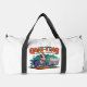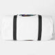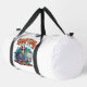 This white duffle bag features a humorous design of a goat in a suit and sunglasses, working at a computer, with "GOAT-TING" above and "THINGS DONE EVENTUALLY" below. This quirky design is perfect for those who appreciate a relaxed approach to productivity. Edit color of the bag caps and body in the Design tool to your favored colors
