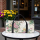This image displays a duffel bag adorned with a richly detailed and elegant floral tapestry pattern, evocative of classic grandmillennial or vintage chintz aesthetics. The design features an abundant arrangement of blossoms in soft pinks, muted yellows, and subtle blues, intertwined with lush green and teal foliage, all set against a textured, antique white or cream background. The intricate details and sophisticated color palette create a timeless and luxurious feel. Equipped with sturdy, dark-colored straps and a secure zipper closure, this bag is a functional yet beautifully designed accessory, perfect for travel, gym use, or adding a touch of sophisticated, nostalgic charm to any ensemble.