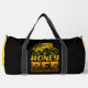This striking black and yellow duffle bag features a detailed illustration of a honeybee, set against a backdrop of honeycomb patterns. The bold text "HONEY BEE" proudly highlights this essential insect. Perfect for beekeeping enthusiasts, nature lovers, or anyone who appreciates the vital role bees play in our ecosystem. Edit color of the bag caps and body in the Design tool to your favored colors.