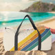 Créez votre propre sac à dos monogramme à bandes rétro. Dispose d'un design abstrait à bandes vintages et d'un nom personnalisé dans une typographie de style classique.