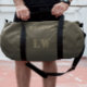 Un sac en duffel personnalisé dans un design classique minimaliste. Ce sac en duffel est à l'ombre de vert foncé et peut être personnalisé avec un nom de famille, des initiales monogrammes et un numéro de maillot. Des détails supplémentaires - comme le nom de l'école, l'équipe sportive et l'année de saison - peuvent être imprimés sur le panneau latéral au-dessus de la poche de maille.