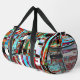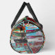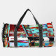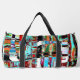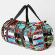 Travel with intensity using the Collapse Reflection Small Duffel Bag, featuring a vibrant abstract composition of vertical and horizontal streaks, layered textures, and glowing outlines. With bold contrasts of red, blue, green, black, and white, this design evokes motion, emotion, and complexity — a visual metaphor for collapse and rebirth.