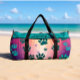 This colorful pattern duffel bag showcases a captivating teal and blue gradient background adorned with multiple shades of colored paw prints. It's a stylish and versatile travel gear piece, ideal for any pet lover.