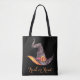 Sac d'Halloween à coller ou à traiter, imprimé sur arrière - plan noir, et texte orange changeant. Le sac fourre-tout est fait de polyester et mesure 16 pouces par 16 pouces et la sangle mesure 28 pouces.