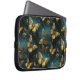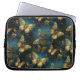 Un élégant sac pour ordinateur portable avec des papillons motif dans des teintes dorées et des bleus brillants.