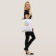 Mode trois ballons Sac fourre-tout. Les ballons colorés en jaune, turquoise et rose ont un message texte : Célébrez les bons moments. Le texte peut être personnalisé.