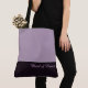 Ce charmant sac fourre-tout avant-gardiste affiche le mot "Maid of Honor" en blanc sur un fond de pourpre-améthyste sombre profond avec la partie supérieure du sac en prune sucrée personnalisée. Il offre suffisamment d'espace pour un texte personnalisé. Les graphiques et le texte sont présents sur les deux côtés de ce sac fourre-tout. Anse noire. Personnalisez davantage ou achetez tel quel.