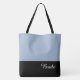 Ce charmant sac fourre-tout avant-gardiste affiche le mot "Bride" en blanc sur fond noir avec la partie supérieure du sac en bleu antique. Dispose de beaucoup d'espace pour un texte personnalisé. Les graphiques et le texte sont sur les deux côtés de ce sac fourre-tout. Poignée noire. Personnalisez davantage ou achetez tel quel.