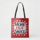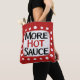 "More Hot Sauce" est un design de texte mignon en rouge avec du texte en noir et rouge, avec une forme d'accent blanc et des points blancs à texture blanche.