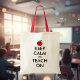 Sac fourre-tout de professeur de pomme rouge | Gardez le calme et enseignez-vous. Conception mignonne pour les enseignants ou les tuteurs des écoles maternelles, maternelles, grammaticales et primaires. C'est drôle d'enseigner des idées cadeaux. Sac de réservation avec texte personnalisable.