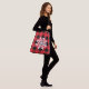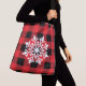 Ce sac fourre-tout de carrosserie est présenté avec un plaid de buffle noir et rouge avec une grande impression de flocon de neige. Grande taille affichée. A des sangles noires. Customisez cet objet ou achetez tel quel. Image stock vecteezy.com