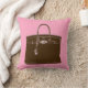Ce coussin comporte une peinture originale de gouache/acrylique/encre par l'artiste Anne Harwell d'un beau sac français classique dans le brun avec un arrière - plan rose. Conception décrite sur l'avant et le dos.