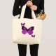 Un beau sac fourre-tout noir et pourpre à papillon. Fourre-tout vos choses préférées autour avec cette toile 100% classique de coton fourre-tout. Poignées et base colorées. Puits construit avec les coutures double-piquées. Trois couleurs disponibles. Machine lavable. 19" x14 " x6". Importé.