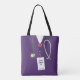 Sac créatif pour l'école ou la remise des diplômes d'infirmière avec une tenue d'hôpital violette. Pour personnaliser, modifiez le texte pour ajouter le nom de l'infirmière ou personnaliser autrement.