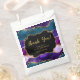 Cet élégant et glamour sac de remerciement d'anniversaire dispose d'un arrière - plan en marbre d'agate violet et bleu turquoise avec des accents de parties scintillant faux or. Le texte combine écriture manuscrite et polices sans serif modernes pour un look élégant et sophistiqué. Les paillettes et la texture en mauvais état créent un mélange parfait de chic et de grunge.