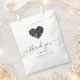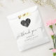 Ces élégants sacs de faveur de mariage modernes ont une forme de coeur remplie d'un agate d'aquarelle noir et d'une parties scintillant en faux argent. Les mots "merci" apparaissent dans un élégant script d'écriture manuscrite gris charbon avec des swashes au début et à la fin. Customisez le message et ajoutez les noms du couple et de la date du mariage.