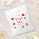 Sac de baby shower à thème de coccinelle mignonne avec illustration d'insecte rouge et rose avec fleurs sauvages et trèfle.