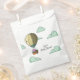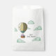 Sacs de baby shower personnalisées adorables avec l'illustration d'un ours en peluche rose dans une montgolfière flottant au loin. Idéal pour ajouter une touche personnelle à vos baby showers préférés. Personnalisez le texte avec votre propre. Illustré et dessiné par Patricia Alvarez.