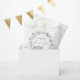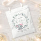 Joli bébé fille douche des sacs de faveur avec "A Sweet Little Merci" dans un mélange de typographie moderne et un script élégant avec un battement de coeur, et une aquarelle d'un bébé éléphant rose dans une couronne de vert d'eucalyptus sauge. Personnalisez avec le nom de la future mère et la date de la douche.