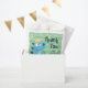 Un mignon sac de faveur pour la fête d'anniversaire d'un petit garçon, ce design a un T-Rex bleu en dessin animé portant une couronne or avec un arrière - plan rayé vert avec étoiles jaunes et confettis épars. Le texte de remerciement peut être personnalisé avec votre texte désiré ou commander l'article avec le texte comme indiqué. C'est une idée mignonne pour une soirée à thème dinosaure pour les jeunes enfants.