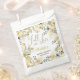 Chute amoureuse boho floral automne chic douche nuptiale sac de faveur avec joli cadre de fleurs vert, jaune, moutarde et kaki avec feuillage et eucalyptus. Un boho inspiré automne thème de la douche nuptiale avec une typographie de script du coeur moderne.