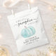 Douche bébé mignonne, merci pour le sac de faveur avec une aquarelle bleu pastel d'un citrouille et "A Sweet Little Citrouille Is On His Way" écrit dans un mélange de typographie gris mou et un script élégant avec des swashes.