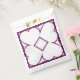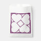 Ce sac de faveur comporte quatre coeurs blancs autour d'un diamant blanc central, surligné de rose pâle sur un arrière - plan de prune.