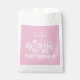 Un Coquette rose moderne Baby shower tiré main déco de fête en faveur sac design typiquement mêle des éléments fantaisistes et ludiques avec une esthétique contemporaine. La taille est un choix standard et populaire, mais d'autres formats sont disponibles. Le design est dominé par des tons doux et roses, créant une atmosphère douce et féminine. "Coquette" évoque une atmosphère flirtante et charmante, avec des illustrations délicates et dessinées à la main d'éléments. Police manuscrite de typographie moderne avec polices sans-serif minimalistes pour un look équilibré et sophistiqué. Cette invitation évoque un sentiment de chaleur et d'excitation pour la célébration à venir, mêlant la joie d'un baby shower à un design artistique et tendance.
