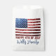 Personnalisez avec votre nom de famille. Sparkly préférez les sacs avec le drapeau des Etats-Unis dans les parties scintillant en faux rouge et bleu scintillant. Nous utilisons des photos de mousseux et non les parties scintillant réelles.