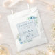 Améliorez votre fête avec ce sac de faveur de mariage magnifiquement raffiné, orné d'un arrangement charmant de fleurs bleu aquarelle douce dans un cadre romantique d'inspiration botanique. Le design délicat est caractérisé par une typographie serif sophistiquée et des tons bleu pastel doux, créant une impression intemporelle et gracieuse. Parfait pour des soirées de printemps, des événements sur le thème du jardin ou des réceptions d'inspiration nature, ce sac de faveur est idéal pour présenter des petits cadeaux ou des douceurs à vos invités. La composition épurée et minimaliste offre un accent frais et moderne, tandis que le thème floral classique exprime une profonde gratitude pour que chaque client se sente vraiment apprécié et s'assure que votre journée spéciale est à la fois mémorable et élégante.