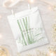 Ce design présente d'élégantes pousses de bambou vert. L'arrière - plan de bambou vert cède la place à la typographie de la formulation marron. Le bambou ombrage lui-même en créant un ton de vert différent lui donnant une dimension. Elégante conception de sac de mariage asiatique avec des éléments modernes. Des invitations de mariage et d'autres articles de papeterie sont également disponibles.