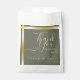 Elégant Sage Green avec des bandes d'or. Merci de calligraphie pour avoir fêté avec nous. Le Mariage À Thème Terre Favore Le Sac. Il fait partie d'une collection de suites mariages. Ce sac de faveur peut être facilement édité avec votre texte personnel