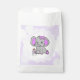 Jolie gâterie de baby shower de fille à thème d'éléphant en caricature violette.