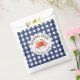 Illustration d'un crabe sur un arrière - plan en vichy bleu et blanc. Personnalisez les noms et la date.